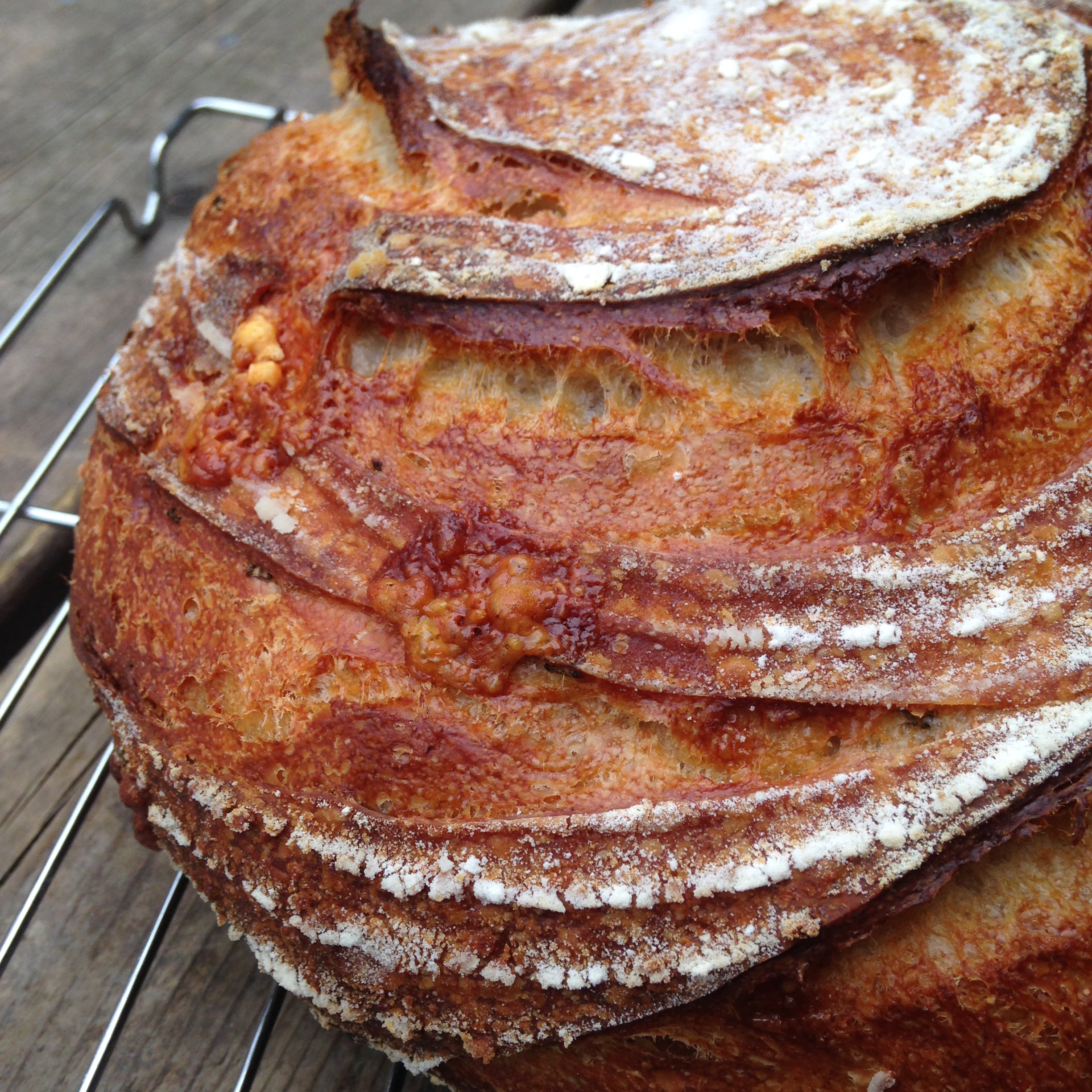 Rule two. When the lid comes off and the dough has spread like a pool of blood, tell your ego to shut-up and wonder why. (If George hadn’t been curious, he wouldn’t have lived through all those books). Was my starter fresh, strong and resilient enough? Did I shape the boule to have sufficient tension? Am I scoring art or slashing their hearts? Is my flour organic, local and freshly milled? Am I using chlorinated water or sweet spring H2O?